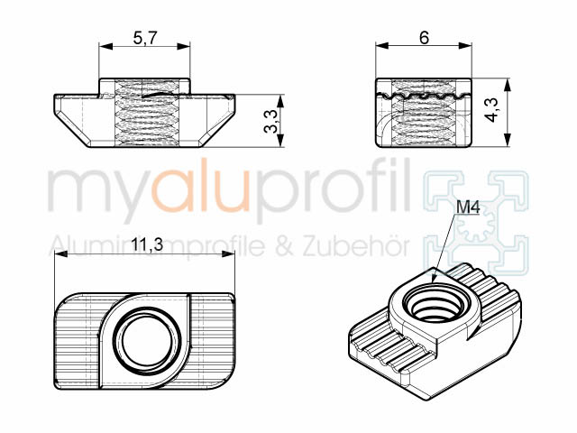 Hammermuttern sind universelle Befestigungselemente. Sie wird in die Nut eingelegt und dann um 90° gedreht.Verbaubar ausschließlich im Profil 6 im Raster 20