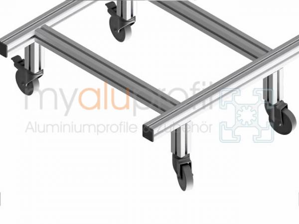 Die Lenkrolle kann entweder direkt in die Kernbohrung eines Profiles oder an einer Transport-und Fussplatte befestigt werden
