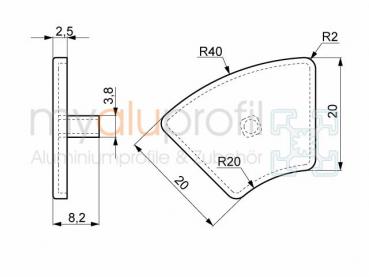 Profilabdeckkappe R 20x40 45° Schwarz Nut 5 I-Typ